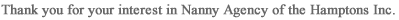 Nanny Agency of the Hamptons, Inc. is acting solely as a referral agent and at no time will be the d employer. The Nanny is under no obligation to accept any referral to or a job from anyone Nanny Agency of the Hamptons, Inc. refers the Nanny to.